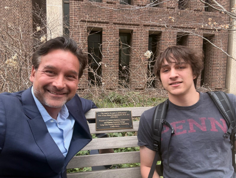 Kaihan and his son, a current student at University of Pennsylvania, during the recent Outthinker workshop at The Wharton School. Sitting on a bench honoring Kaihan’s father, they share a sense of fandom, passed across generations.