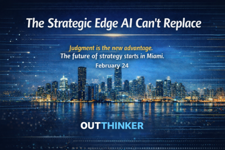 As we reach this turning point, when information is abundant but true judgment is scarce, leaders need spaces where thinking can deepen and strategy can sharpen. The upcoming Outthinker Miami Summit is designed to help executives make sense of this moment, connect across industries, and strengthen the judgment that will shape the next chapter of strategic leadership.